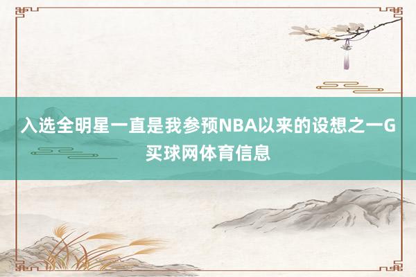 入选全明星一直是我参预NBA以来的设想之一G买球网体育信息
