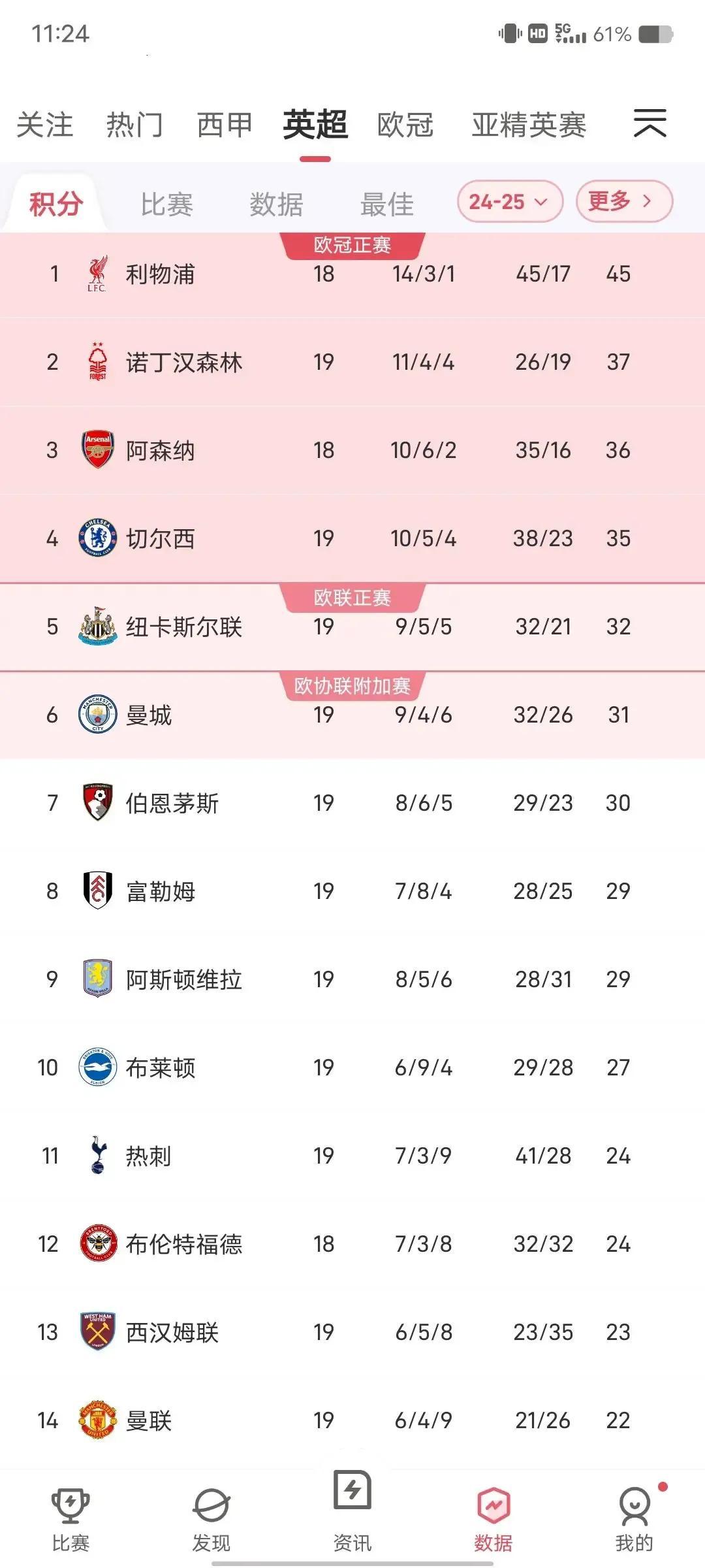 然后曼城第六名,只差第四名4分,以往赛季夺冠王人能反超4分,这前四球队长途。